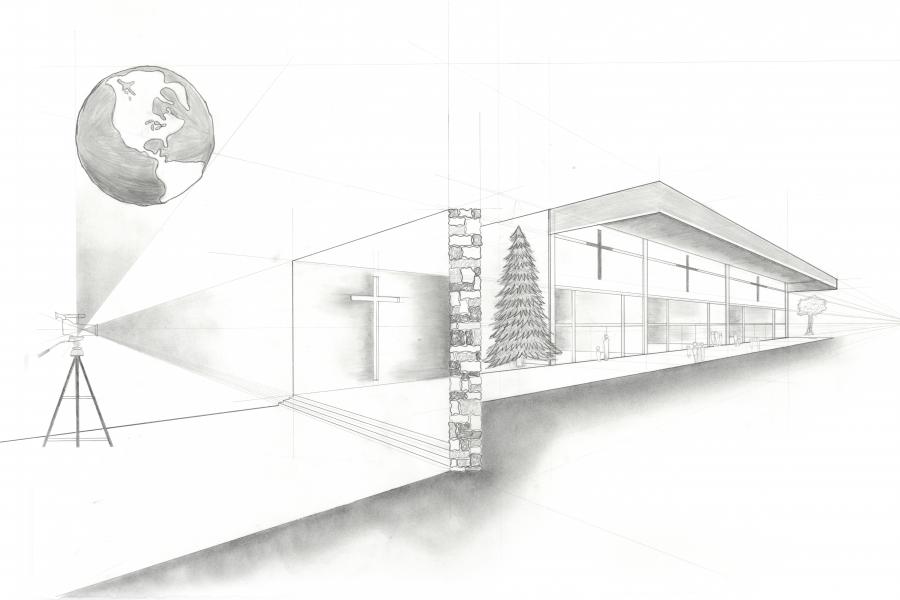 Design and architecture can be traced back to the beginnings of the earth through sources such as The Bible and Christianity. Extrapolating upon these intentions are to identify a distilled approach to architecture and examine topics of design linking Christianity to the built religious and non-religious environment. The Church’s shifting status manifests through the declining popularity of the religion. In light of the decline, questions of relevancy are being considered. Many are wondering how can this be addressed and how can Christian practices both reflect God and his guidance while branching out and adjusting to the current ethos? Regardless of doctrine or denomination of Christianity, many churches have a similar underlying goal; to reach those who are ‘unchurched’ a term self-defined as someone who does not believe in the faith of Christ. Both the faithful and unfaithful are integral pieces in God’s plans for Christianity and this world. Agape, God’s selfless love for all humankind is one of three terms found in The Bible that defines love. This highest form of love impacts all aspects of Christianity and earthly life and manifest through built environments, human interactions and influences one’s daily actions. Churches traditionally have been used for a variety of programs, for religious ceremonies and practices, unaffiliated meetings, gatherings and events. Regardless of the event taking place the built forms of Christian worship spaces and attendant facilities portray and advocate for agape and in turn administer the interactions between the ‘unchurched’ and churched. This is not a means to convert or force the ‘unchurched’ into a church they call home, but merely to explore God’s love in a tangible way through the built environment. Through the examination of ancient and contemporary religious practices and architecture, the goal is to design a space that connects Christianity to our human-made world; a place that is both inviting to the ‘unchurched’ while remaining a rich harvest for Christianity and respecting God himself.