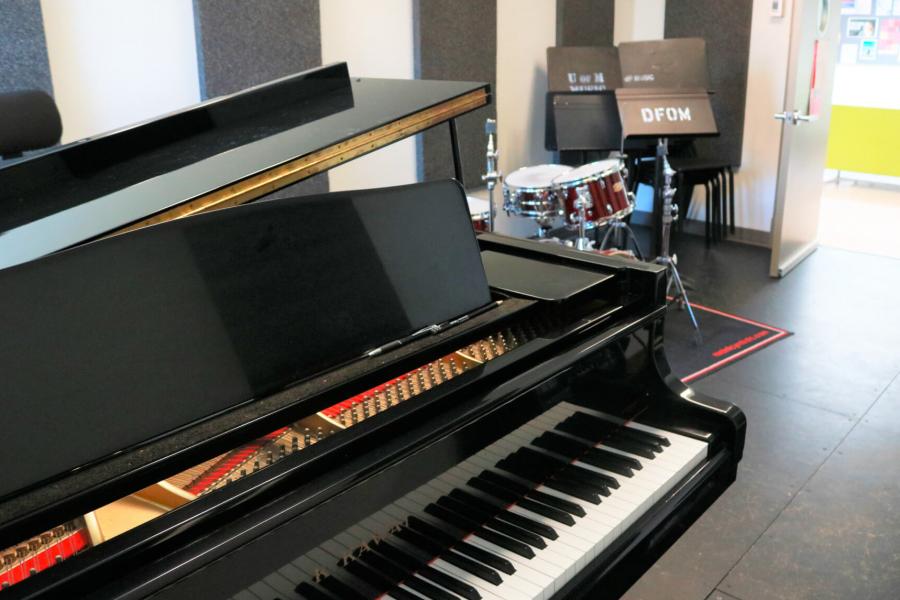 Each practice room features either a piano - usually a Yamaha or Kawai - and has acoustic panelling for optimum sound quality. Two designated jazz ensemble rooms are equipped with a piano and full drum kit. Rooms are humidity-controlled, with humidity levels checked at regular intervals. Thermostats allow students to adjust the temperature for their comfort.